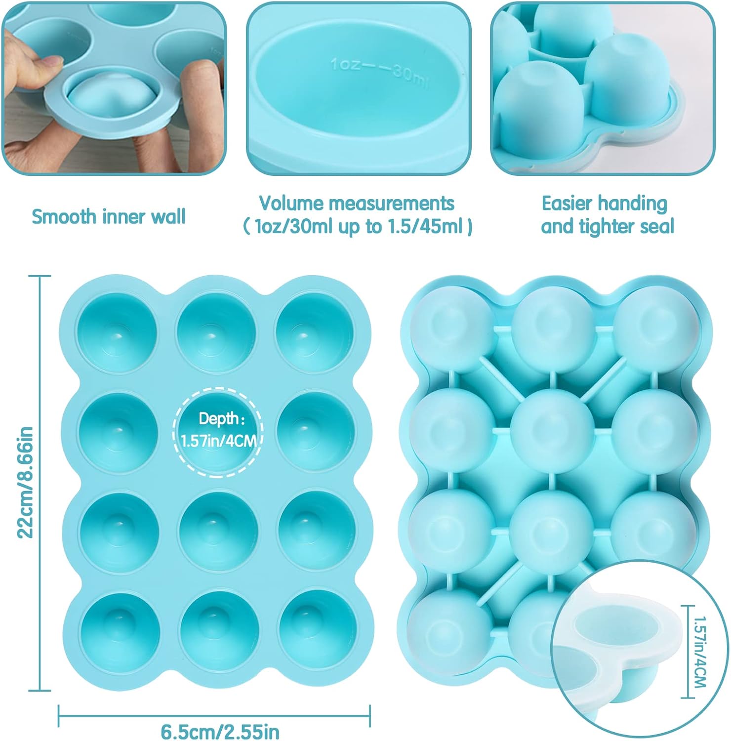 ❤️【Easy to Use&Clean】The silicone ice cube tray is not only useful for the baby, but also friendly to the mother. The silicone lids are soft and durable, which good to seal baby food and easy to open. Also, individual servings pop out easily, dishwasher safe.
