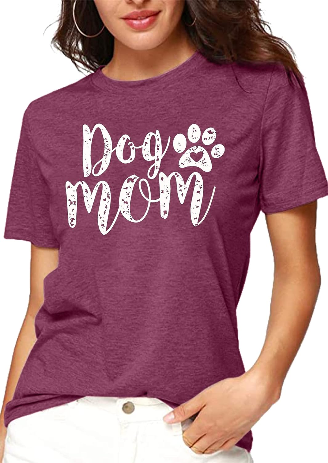 Dog Mom Tshirts for Women Funny Dog Paw Graphic Print Short Sleeve O Neck Mom Shirt