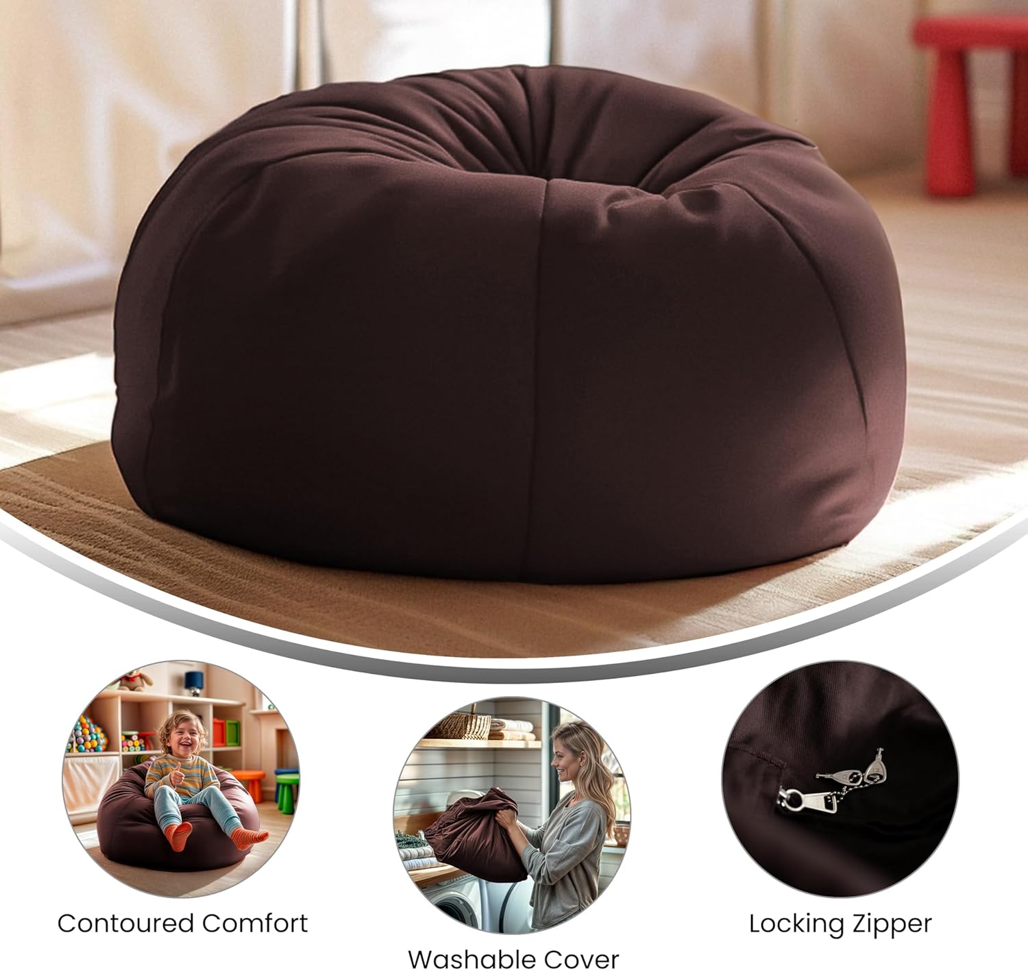 Flash Furniture Dillon Small Bean Bag Chair for Kids and Teens, Foam-Filled Beanbag Chair with Machine Washable Cover, Brown