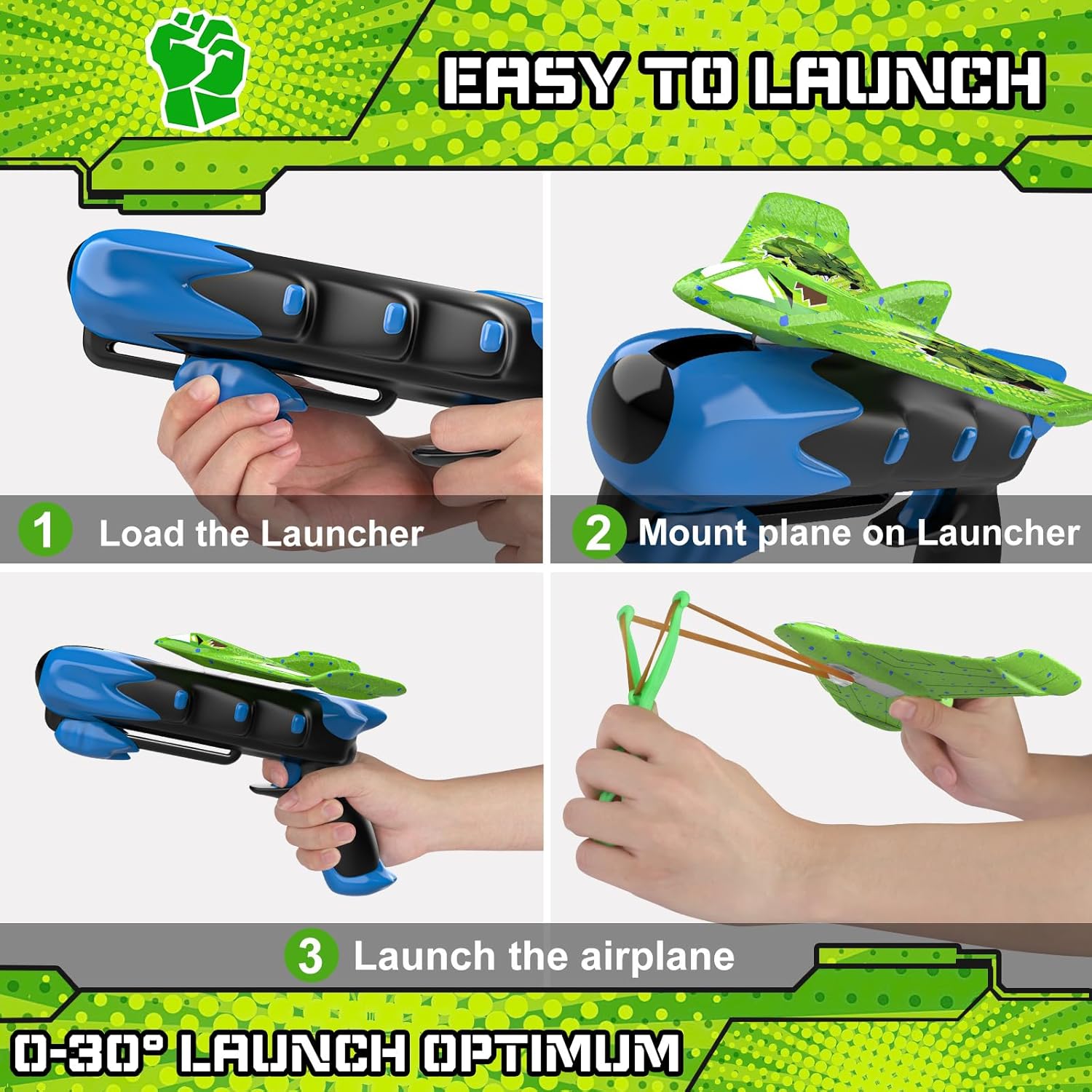 Up to 49ft – This catapult airplane has an effective range of 49 ft, with lightweight, impact resistance, good flexibility, convenient carrying, high-performance free flight advantage. Using a slingshot to launch will allow for better control of distance and direction, thus exercising the child’s control of strength.