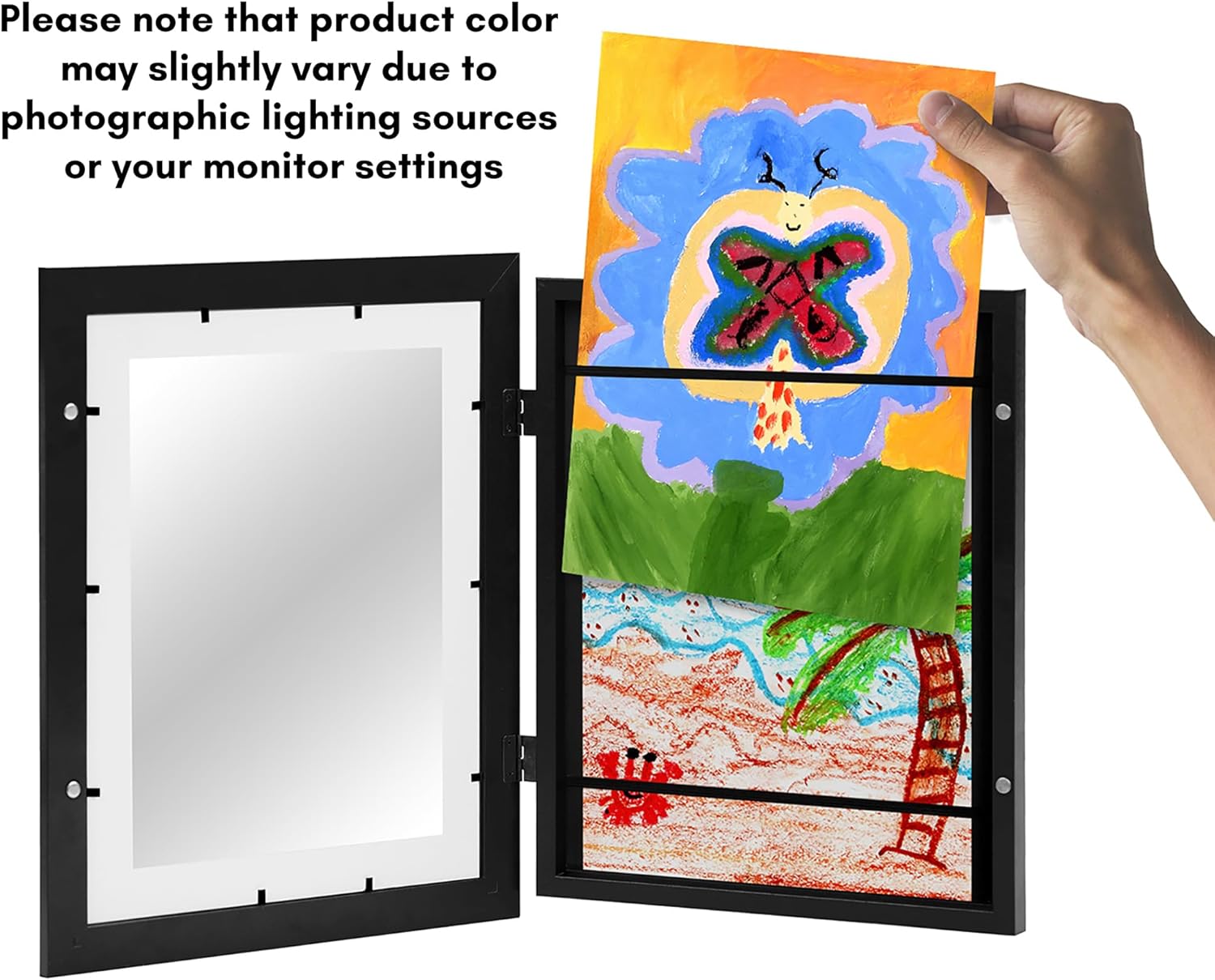 Kids Artwork Frame Changeable (Black) – Magnetic Door Holds 100 Art Pieces – 8.5×11 Letter Size Display with Mat or 10×12.5 Without Mat – My Mini Masterpiece