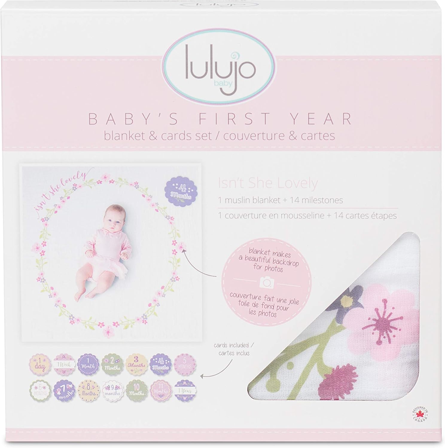 lulujo Baby’s First Year Milestone Blanket and Card Set | 40in x 40in (Isn’t She Lovely)