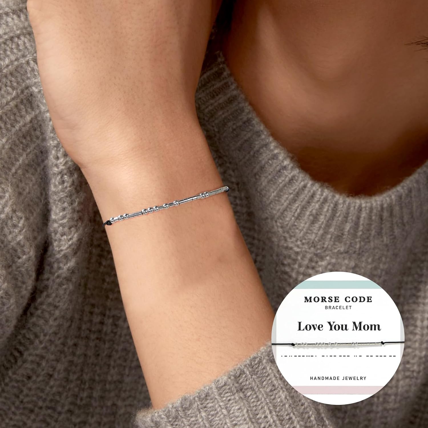 Mom Morse Code Bracelet – This handmade bracelet is crafted with copper and alloys beads. The bracelet is adjustable, with a waxed cord and Morse Code chain length that can be customized for the perfect fit. The 7-inch size is the most popular for adult women, ensuring a comfortable and stylish wear. Features a secret Morse Code message that spells out “love you mom,” making it a personal and heartfelt gift for any mother