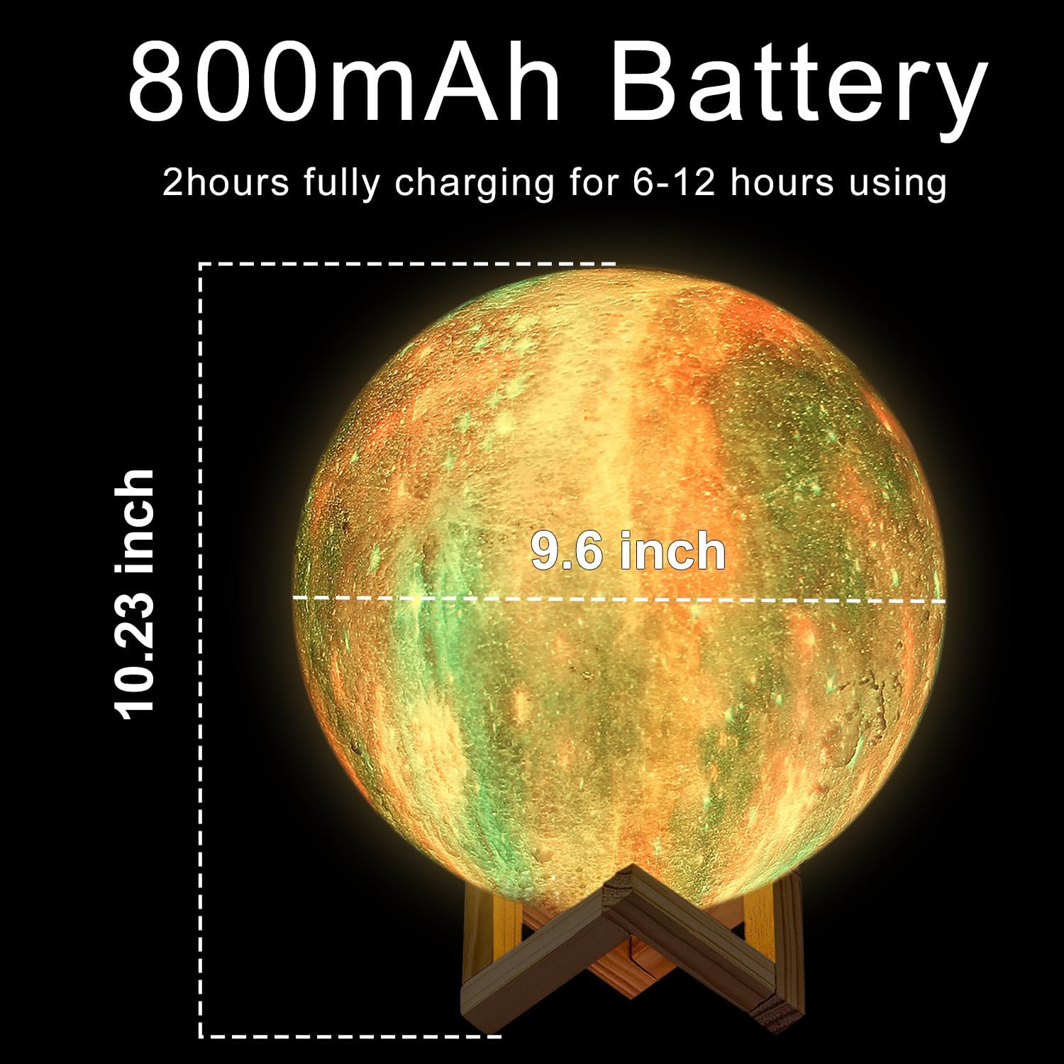 🌟 Moon lamp made of PLA, very durable; Built-in rechargeable battery, no line hanging around, you can hold the moon light on your hand; Designed with USB charging port, and you can charge this moon globe on any USB devices, like computer/power bank or USB adaptor;