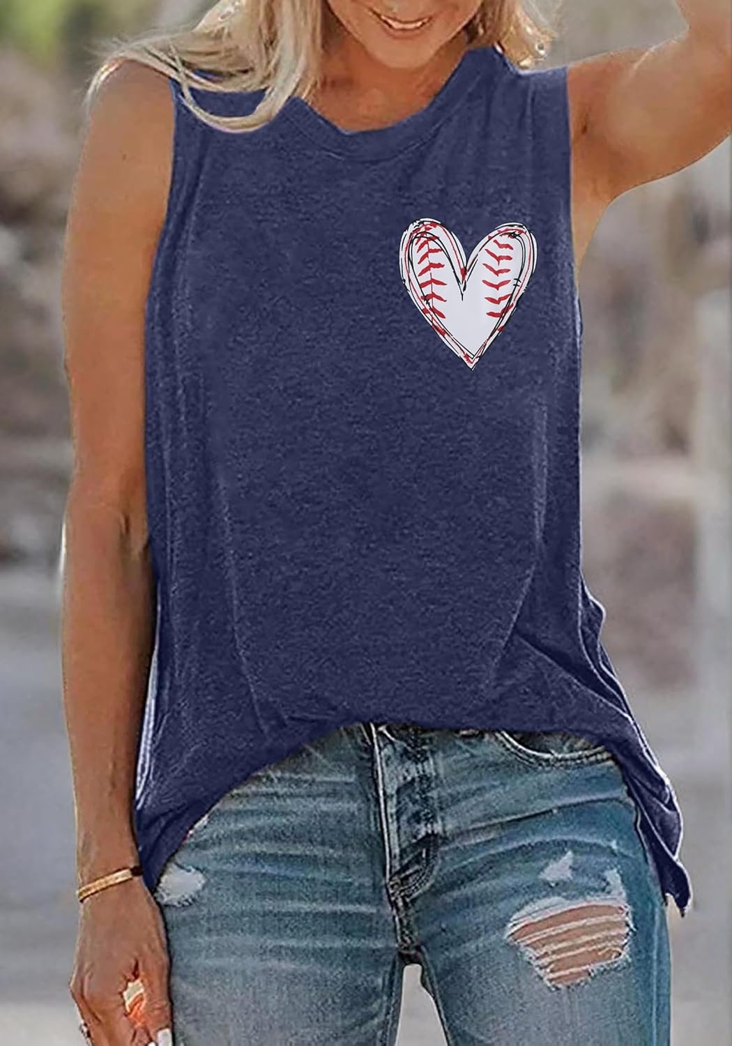 MOUSYA Baseball Mom Shirt Women Heart Baseball Shirt Softball Mom Tee Casual Short Sleeve Tops Deep Blue
