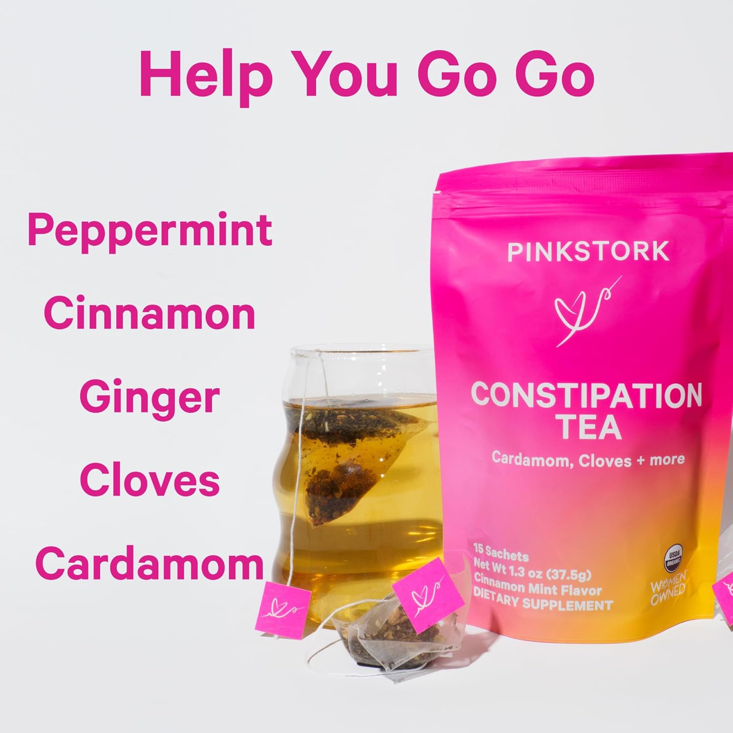 Pink Stork Organic Constipation Tea – Natural & Gentle Support for Digestion, Gas, and Constipation – Prenatal Essentials – Pregnancy and Postpartum Must Haves – 15 Sachets Cinamon Mint Laxative Tea