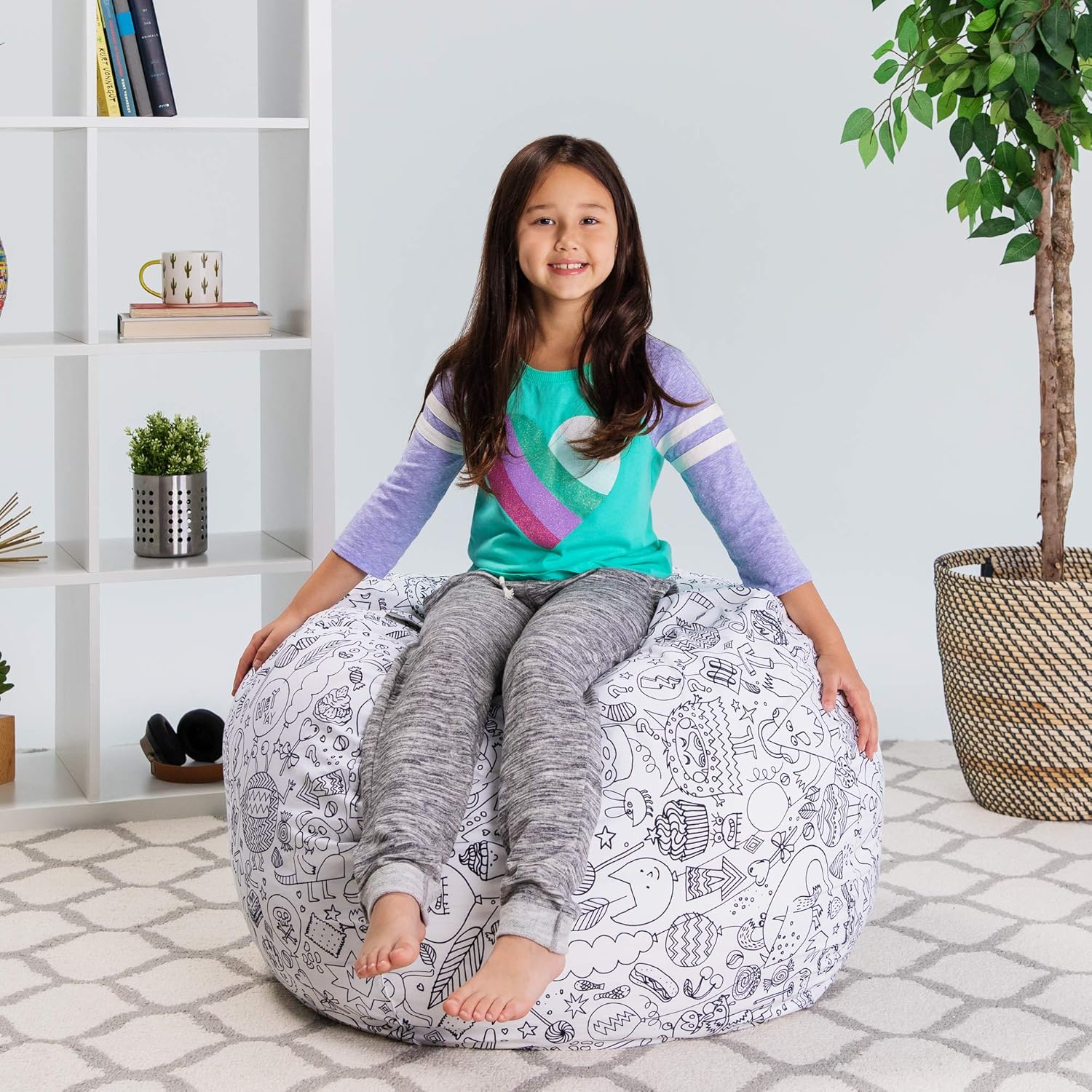 Posh Stuffable Kids Stuffed Animal Storage Bean Bag Chair Cover – Childrens Toy Organizer, Large 38″ – Canvas Fun Creatures Coloring Fabric
