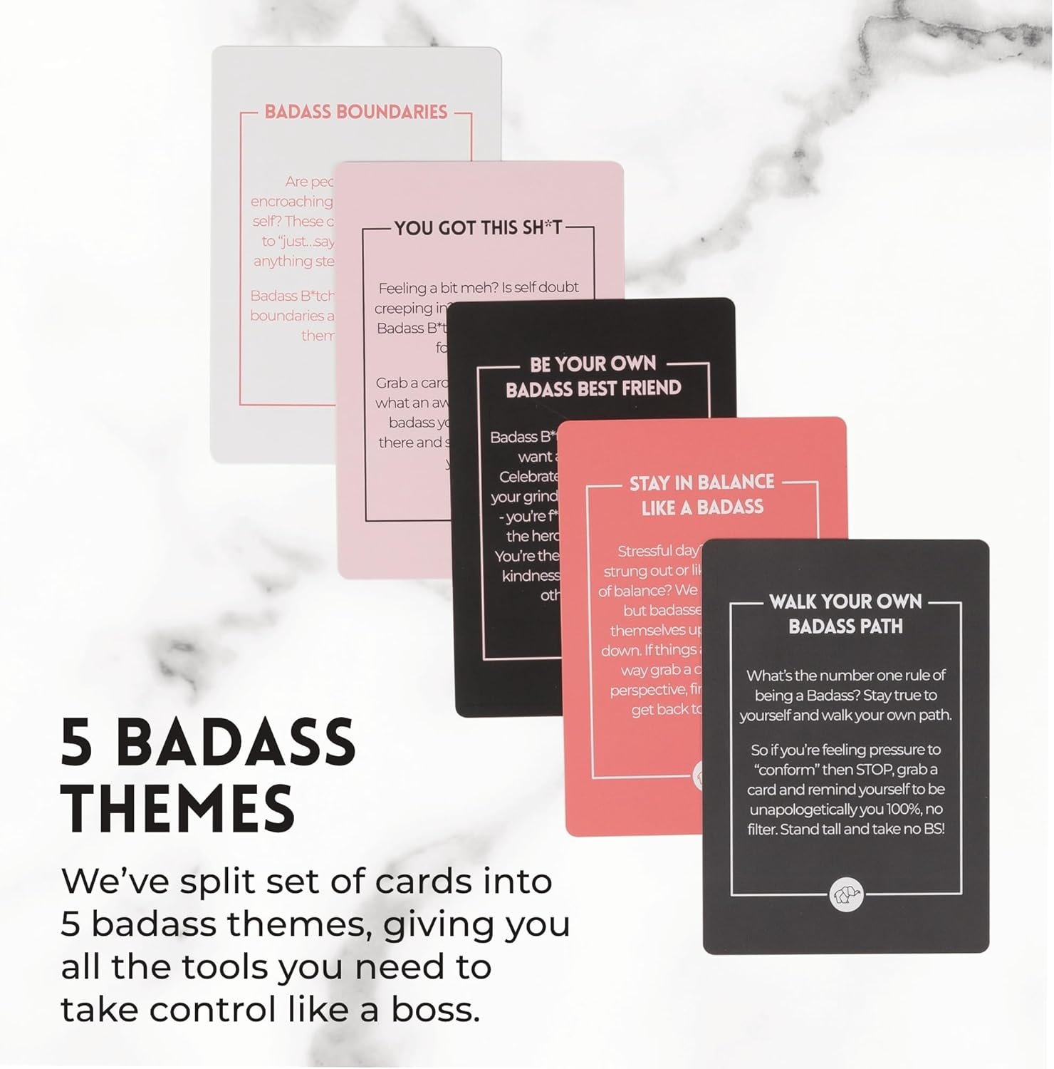 Life the Affirmation: Pithy affirmations for a badass aren’t always easy to manifest. That’s why on the reverse side of each sweary affirmation cards you’ll find a mantra based on 5 badass themes to help you apply the badass affirmations to be an unstoppable boss, making these the ultimate badass gifts for women.