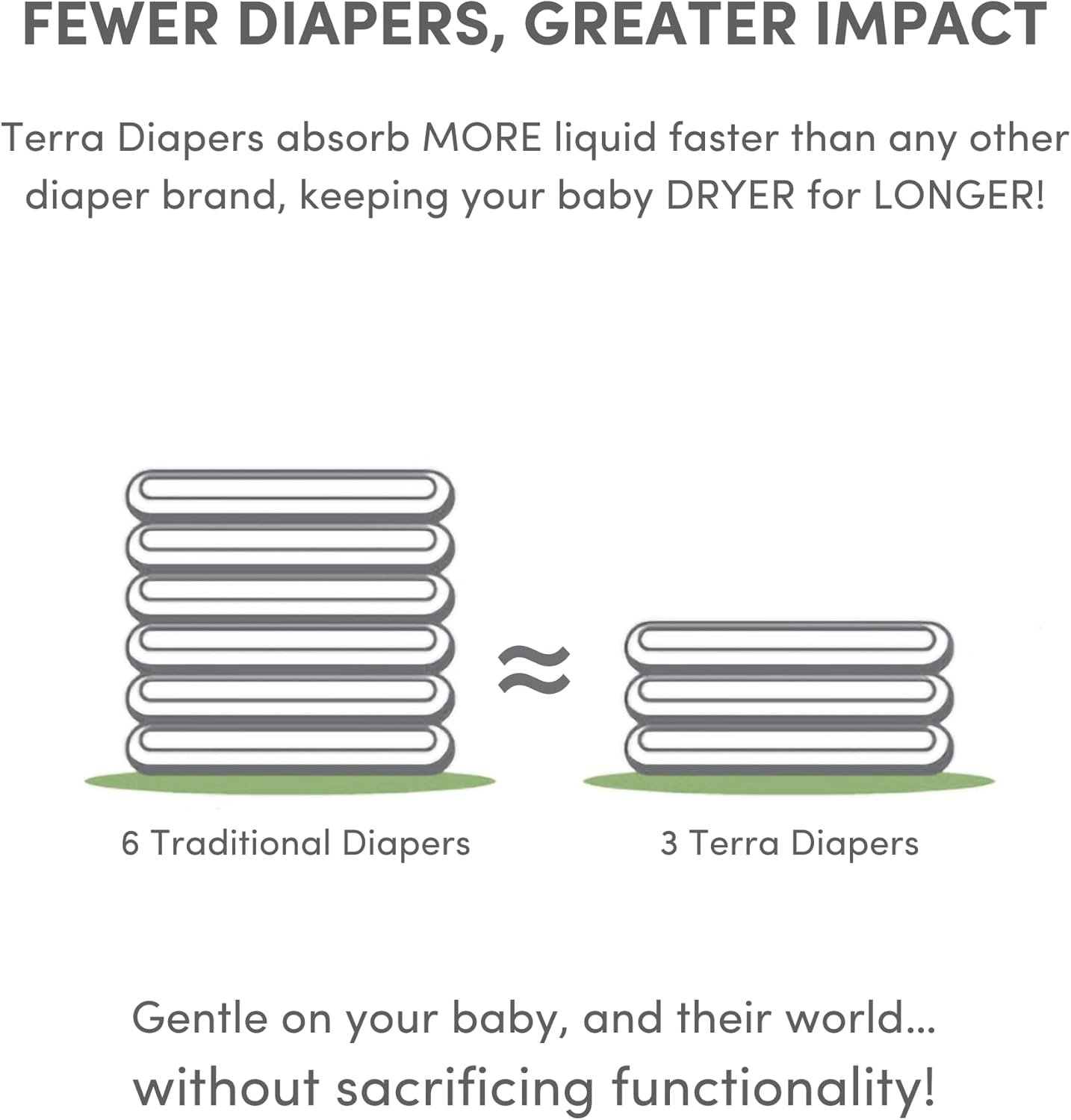 This is a bit of a read but stick with me because if you’re reading this then you’re likely a parent of achild in diapers or maybe expecting your first. If that’s the case then it will be worth your time.First – I think this is the first review I’ve ever written on Amazon. I read a ton of them (like everyone) buthaven’t felt the inspiration to ever write one until now.My daytime job is in wound care, so helping people with chronic wounds caused by burns, infection,trauma, or many other underlying medical conditions. I think this gives me a bit of a unique perspectivewhen evaluating diapers. My 24-hour a day job is parenting our amazing 11 mo. old. (who onlyhappened after years of IVF…but that’s a story for another day).Probably not surprisingly, when we started researching diapers my number one priority was the healthof our kiddo’s skin. So this made me ask 2 questions:1) How quickly does the diaper remove moisture from the part of the diaper in contactwith the skin?2) How breathable (aka “natural”) are the materials used to make the diapers are.Let’s start with the second point…To say that there is a lot of “greenwashing” (if you haven’t heard this word before, look it up.Very interesting) going on with baby diapers is a huge understatement. When I went down therabbit hole that is researching “eco-friendly diapers” I discovered an entire world wherebasically everyone says theirs is the best and the most eco-friendly and have laboratory testingto prove it and they’re all splitting hares (see what I did there) on the details of each individualmaterial. Then you have tons of eco-friendly blogs that review the diapers, but they seem likethey’re being paid to do it. Bottom line – diaper brands aren’t legally required to disclose whattheir diapers are made of, and everyone says theirs are the most pure so there’s no way to becertain which one really is the most eco-friendly.With than in mind, much of my reasoning why Terra is the best option here is empirical becauseit’s basically impossible to prove so take it with a grain of salt… 1) The company is based in NewZealand. It just seems like culturally New Zealand isn’t as profit-driven as we are. I also reallylike that they’re legit with their claims… 2) They say they’re 85% plant-based when some othersmake claims of 100% this or 0% that. Why would you say you’re 85%, which is clearly less thanothers, unless you were refusing to play the greenwashing game?Back to the first point…This is where they really sold me and the main reason we’re investing (because let’s face it,these are NOT the cheapest option) in our baby’s skin and diapers. I saw a video on Insta fromsomeone I follow, Jamie Grayson, where he did an actual physical side by side test of how muchliquid each eco-friendly diaper holds and how QUICKLY the top layer of each diaper dried out. Icould not believe how quickly the top layer of the Terra dried out vs all the others. It wasliterally dry in seconds whereas the other ones were all still wet when the test was done. I don’tknow why more people aren’t talking about this because it’s SUCH a critical aspect of keepingskin healthy and avoiding diaper rash and bacteria growth that is common when a baby sits intheir wet. This was all I needed to see as a wound care specialist to stop looking, but for moreproof just google “moisture and diaper rash mayo clinic” to see what I mean. On top of that,the amount of liquid that the Terra absorbed was waaay more than the others. They talk aboutthis on their Amazon page but the video was way more impactful and it was crazy to see. Sincewe started using them, we’ve had 2 leaks (but both were because my husband was still workingon his diaper changing skills!) and critically, ZERO cases of diaper rash.Bottom Line -In my opinion, Terra is hands down the winner when it comes to the health of our baby’s skin.Hope this was helpful!