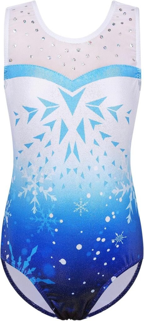 BAOHULU Gymnastics Leotards for Toddler Girls Kids Sparkle Sequins Mesh Top Dancewear Party Costumes