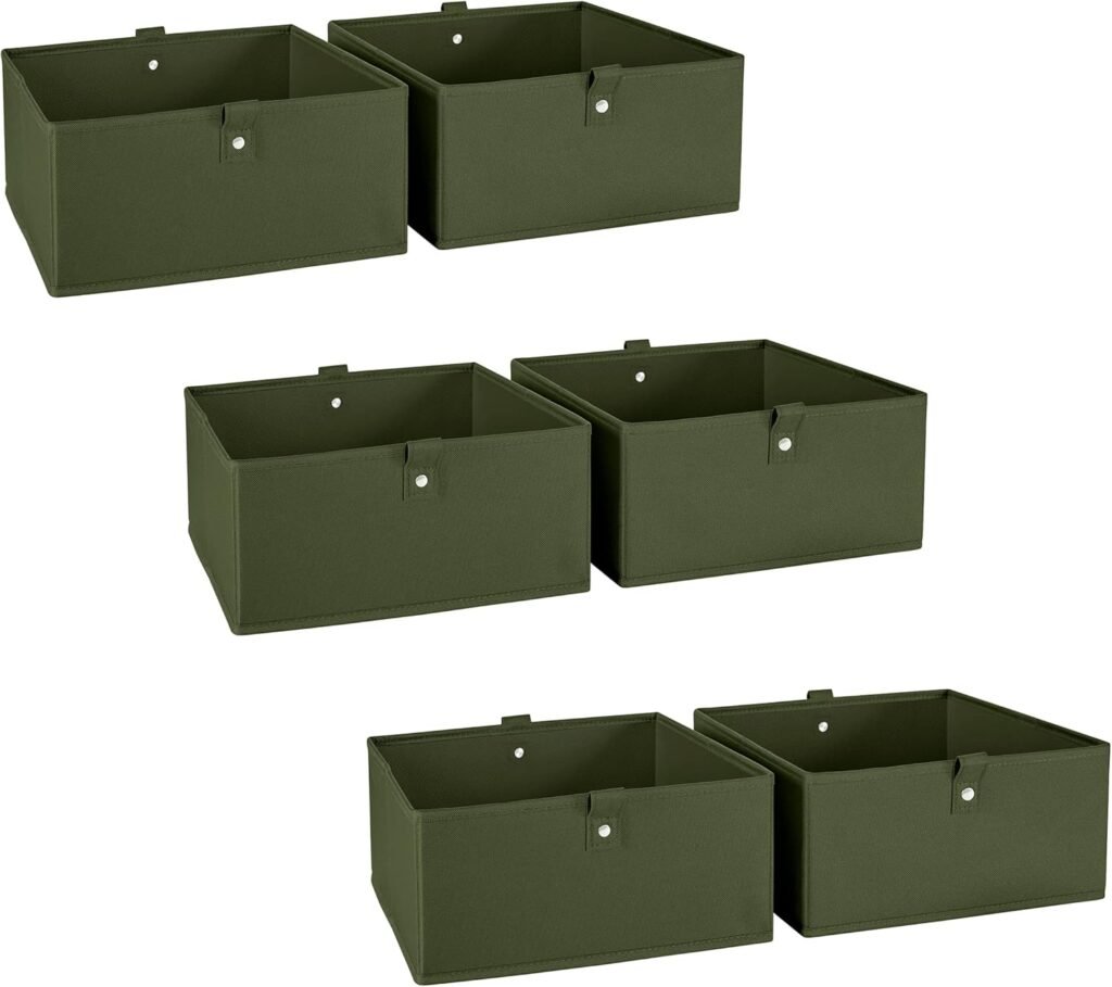 RiverRidge Kids 6pc Folding Storage Bins Set – 10.5”W x 5”H Fabric Boxes with Handles for Closet Organizer & Storage – Olive Cube Storage Organizer for Toys, Clothes & Crafts – Fits Shelves