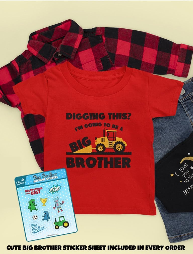 Tstars Big Brother Construction Shirt for Toddler Boys – Pregnancy Announcement Gift – Sibling Reveal T-Shirt