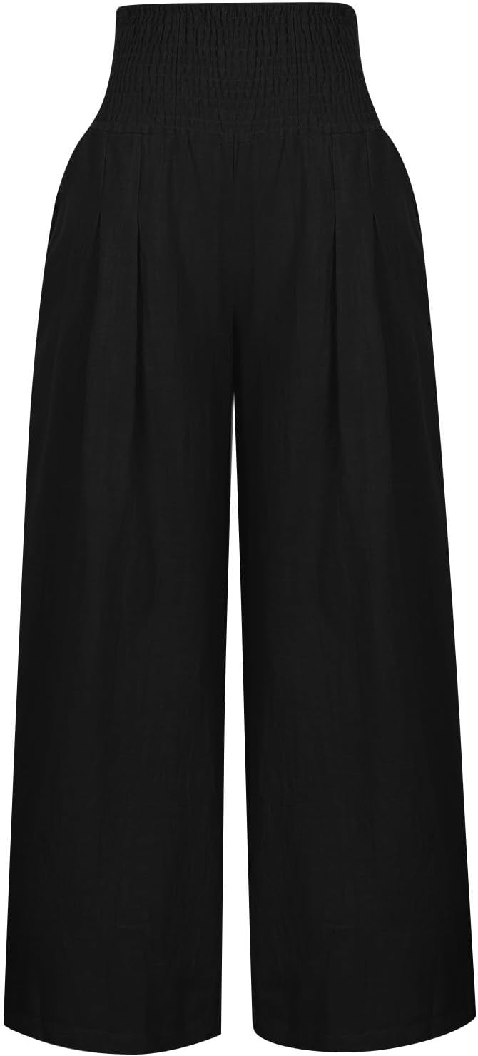 Womens Linen Palazzo Pants Trendy High Waisted Stretch Lounge Wide Leg Pant Loose Comfy Casual Beach Vacation Trouser