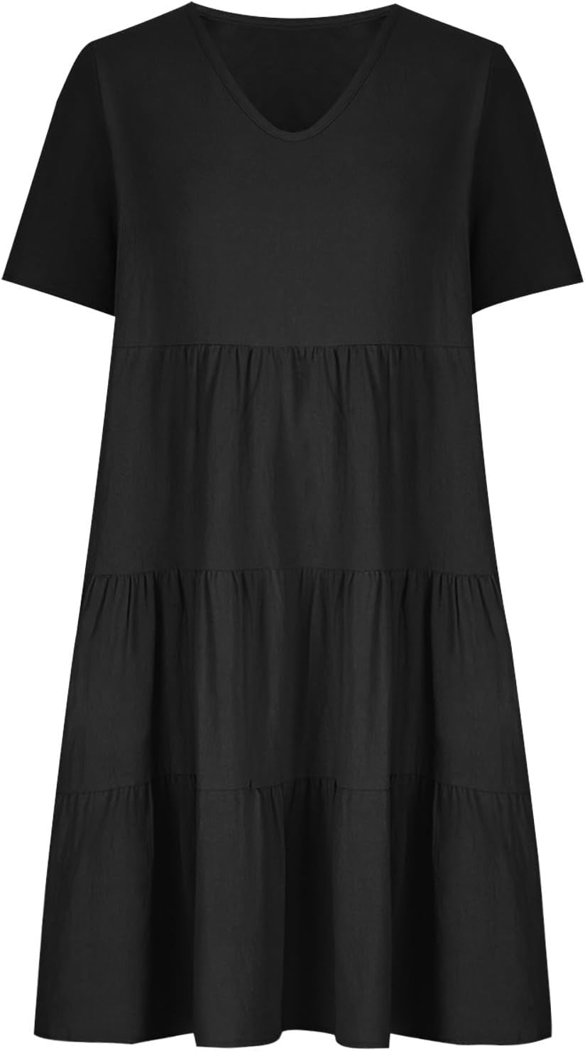Womens Summer Linen Dresses 2024 Plus Size V Neck Short Sleeve Ruffle Flowy Dress Casual Loose Lightweight Cute Dress
